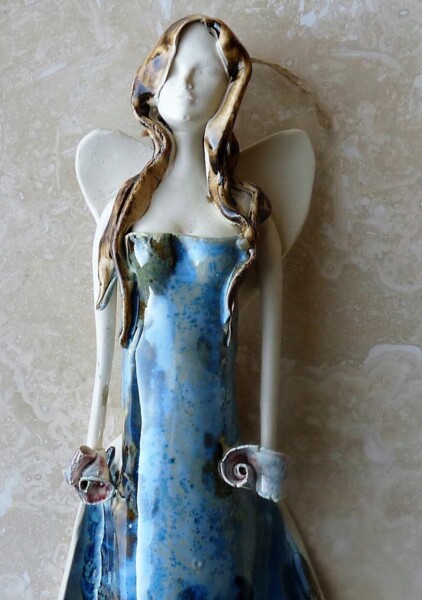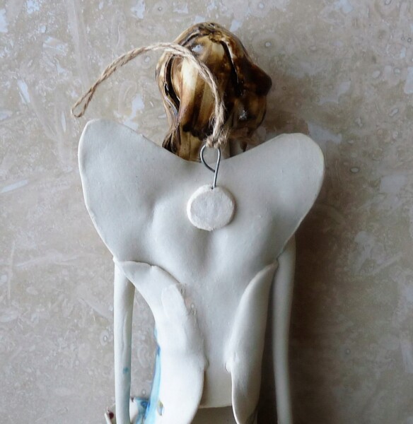 Ceramiczna figurka Anioł ręcznie wykonana, ręcznie malowana i w całości szkliwiona. Oryginalna i niepowtarzalna.