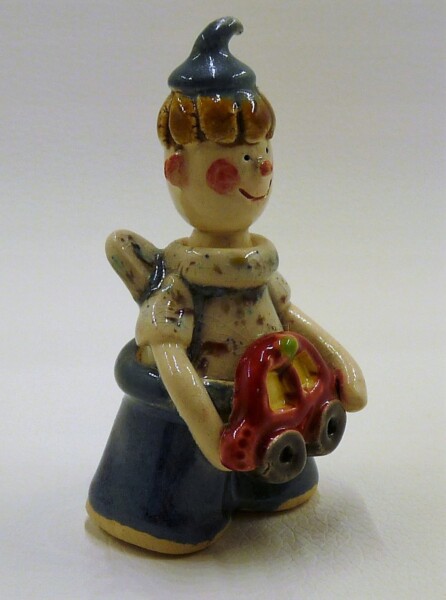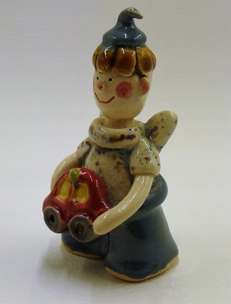 Figurka Ceramiczna Anioł Niebieski Chłopak z samochodzikiem Prezent 7 cm