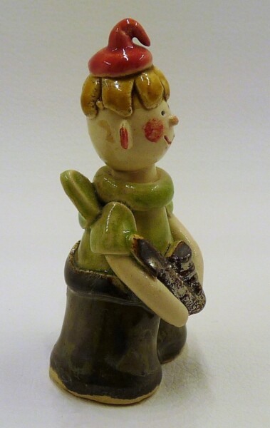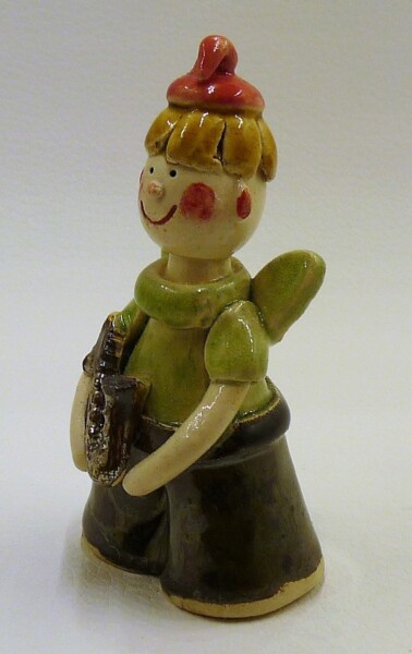 Figurka Ceramiczna Anioł Zielony Chłopak z trąbką Prezent rzeźba 7 cm