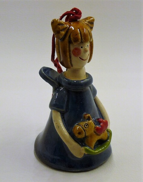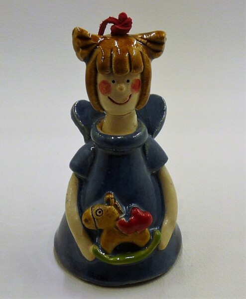 Figurka Ceramiczna Dzwonek Anioł Niebieski Dziewczyna z Konikiem Prezent
