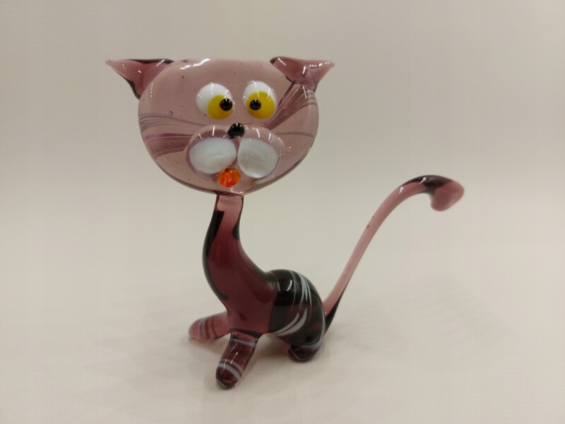 Figurka szklana KOT Fioletowy w białe paski Kotek Prezent rzeźba FD duża